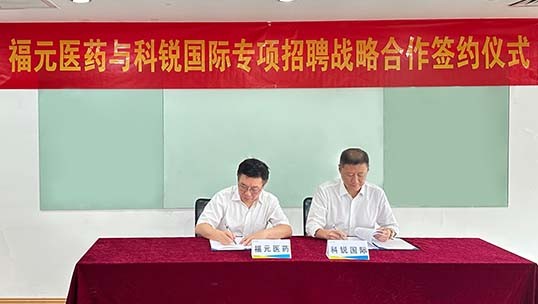 7月31日,北京福元医药股份有限公司与北京科锐国际人力资源股份有限公司正式签署战略推广二部专项招聘战略合作协议。